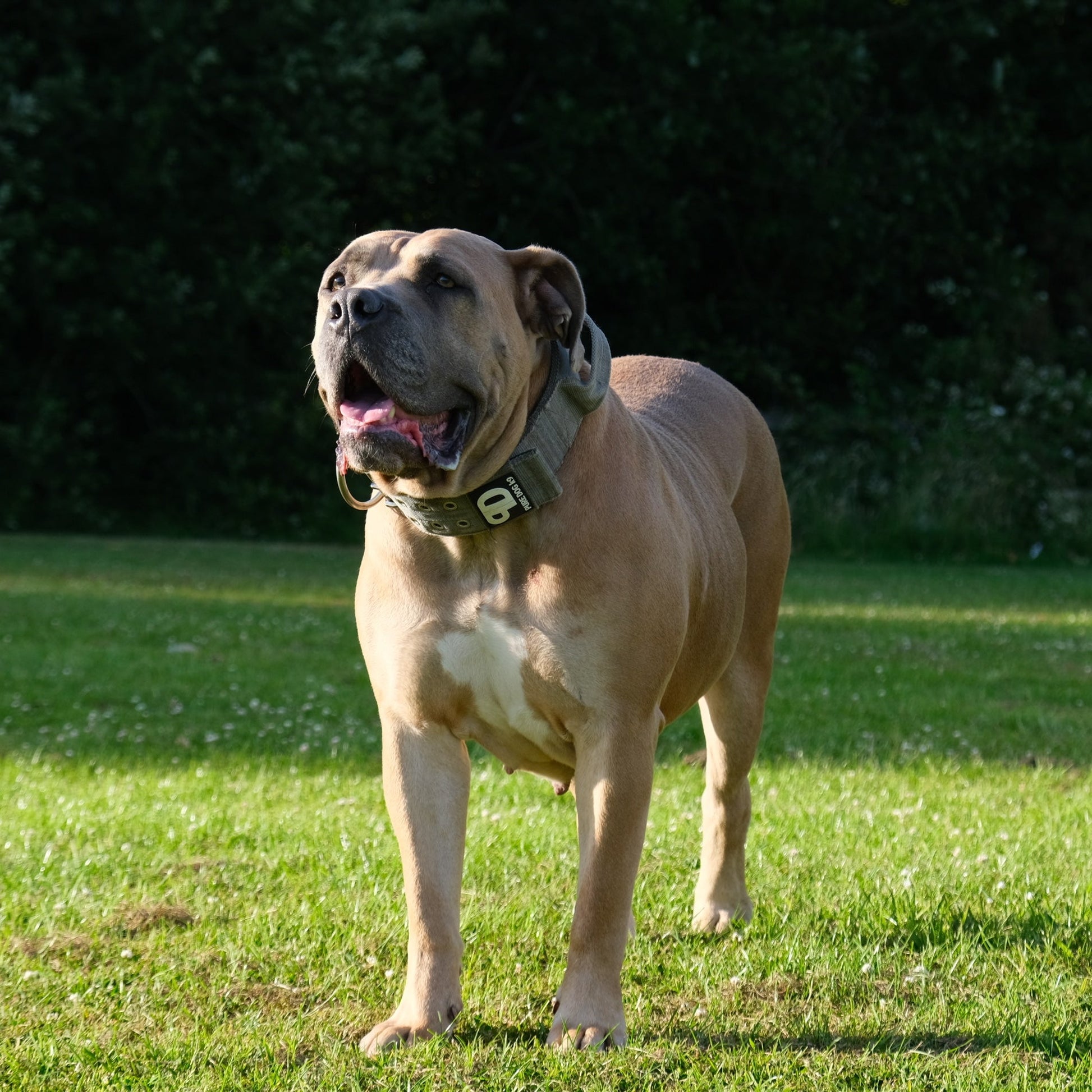 Pure Dog K9 sport collar which is made of 4 layers of top quality nylon materials including thickset padding, double stainless steel non rust pins. This collar has excellent tear strength it is made from the toughest materials, the collar includes a additional handle for full control designed to withstand the extreme pressures exerted by your large breed.