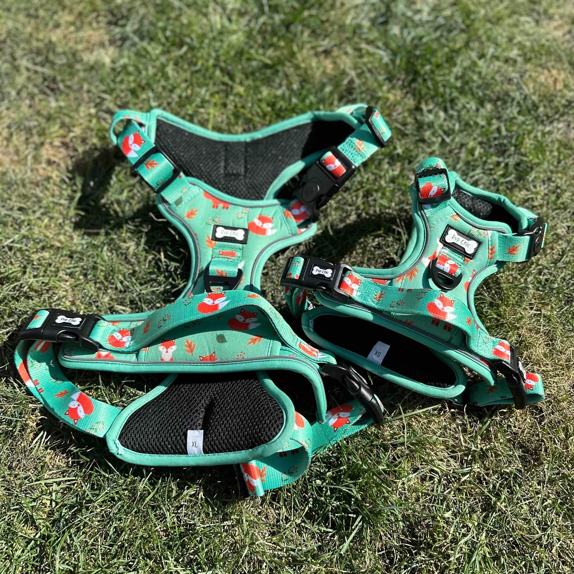 Inquisitive Fox No Pull Tactical Dog Harness – Green Fox Print, Adjustable, Step-In (XS-XL)