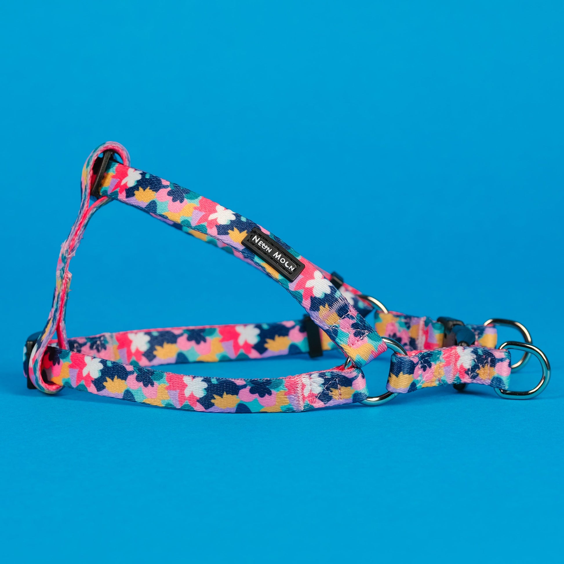 The Luna Step-in Harness – a vibrant celebration of style and functionality! With its bright and colourful floral print, this harness transforms every walk into a delightful adventure, even on the cloudiest days.